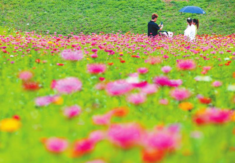 8月,在荥经县龙苍沟镇的桌山花栖谷内,以百日菊为主的30余亩花田花开正盛。 雅安观察 黄刚 摄