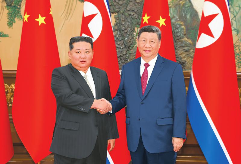 九月四日晚,中共中央总书记、国家主席习近平在北京人民大会堂同来华出席纪念中国人民抗日战争暨世界反法西斯战争胜利八十周年活动的朝鲜劳动党总书记、国务委员长金正恩举行会谈。新华社记者黄敬文摄
