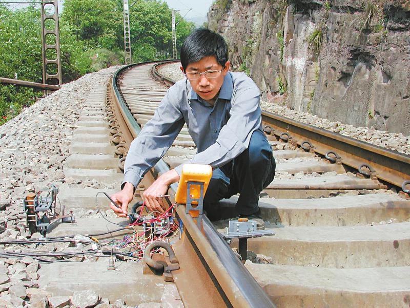 翟婉明在铁道上做试验。 受访者供图