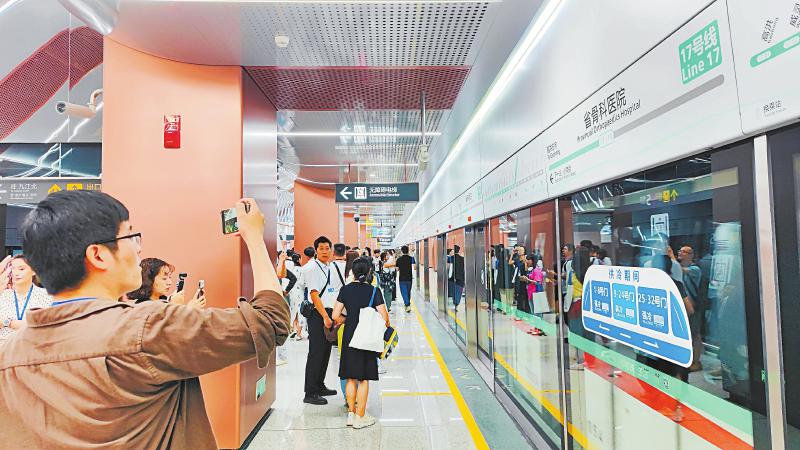 试乘市民在省骨科医院站拍摄,大家即将登上地铁17号线进行体验。 关彤 摄(C视觉)