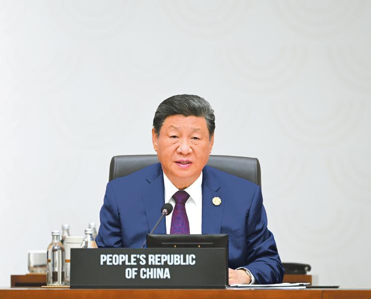 当地时间11月1日上午,国家主席习近平在韩国庆州出席亚太经合组织第三十二次领导人非正式会议第二阶段会议,并发表题为《共同开创可持续的美好明天》的重要讲话。 新华社记者 谢环驰 摄