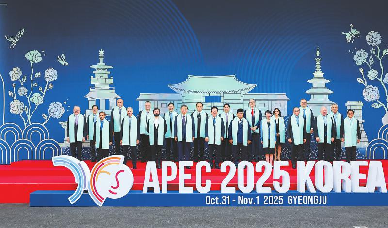 当地时间11月1日上午,国家主席习近平在韩国庆州出席亚太经合组织第三十二次领导人非正式会议第二阶段会议,并发表题为《共同开创可持续的美好明天》的重要讲话。这是会后,与会经济体领导人、代表集体合影。 新华社记者 姚大伟 摄