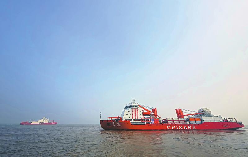 11月1日,“雪龙”号(前)与“雪龙2”号起航。新华社记者 方喆 摄