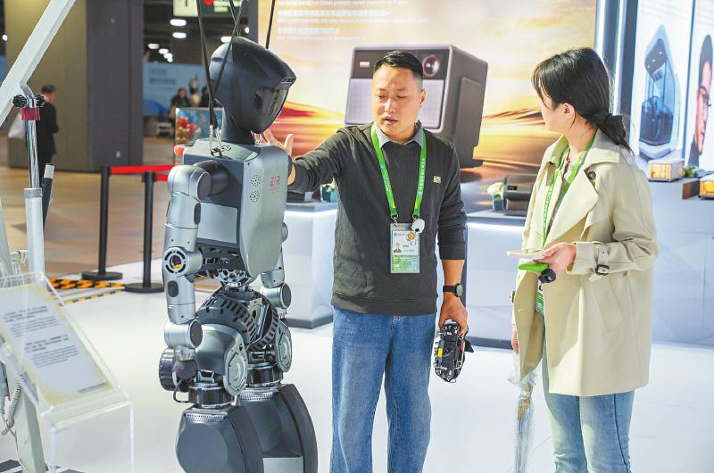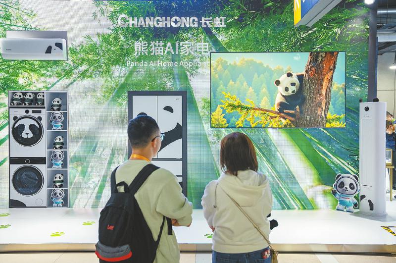 观众被四川馆展示的熊猫AI家电产品吸引。