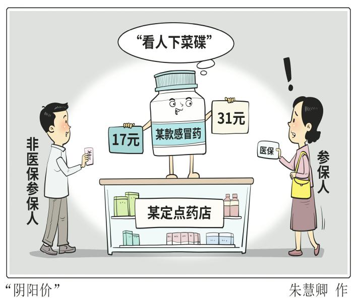 破除药店“阴阳价”乱象,需建立更加完善的价格动态监测机制,市场监管、医保、药监等部门也要形成监管合力,加大飞行检查频次,整治不合理高价,同时激活社会监督力量,加大对违法违规行为的行政处罚力度。让药品定价更公平透明,才能让医保基金真正惠及于民,让百姓购药更放心。郭韵/文 朱慧卿/图