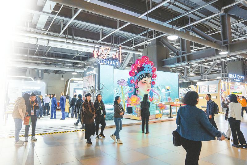 11月5日,第八届中国国际进口博览会开幕首日,四川馆吸引不少观众参观。