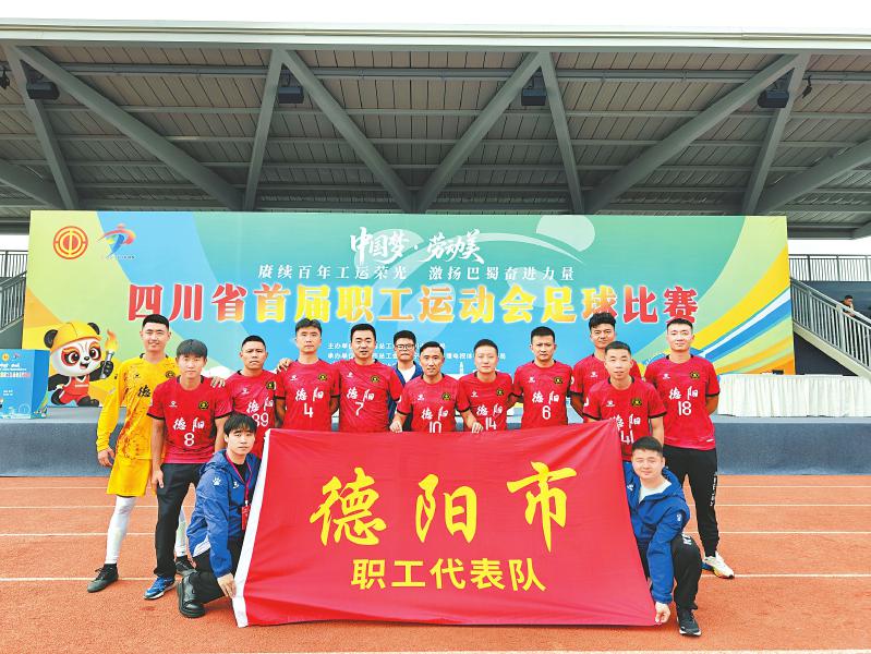 德阳市职工代表队参加四川省首届职工运动会足球比赛。