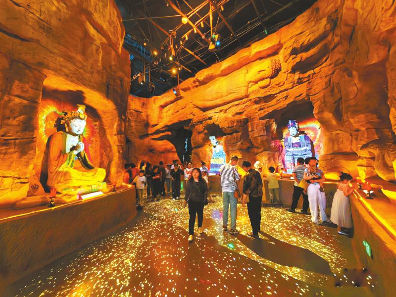 3D打印的等比例石窟模型吸引游客拍照打卡。 吴坤忠 摄(C视觉)