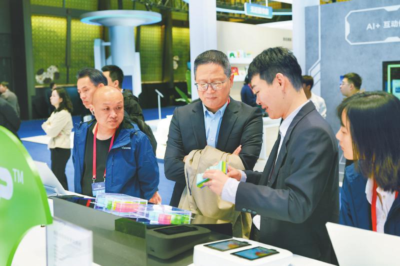 11月3日,2025世界显示产业创新发展大会创新成果体验区集中展示了显示产业上下游的最新技术与产品成果。图为参观者在创新成果体验区参观。 四川日报全媒体记者 郝飞 摄