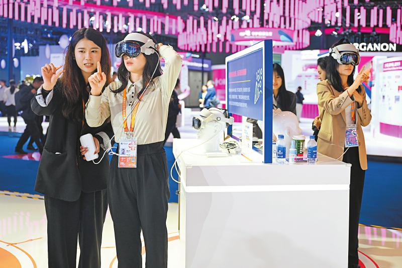 11月7日,观众在医疗器械及医药保健展区诺华展台通过智能眼镜了解肾脏知识。诺华是进博会八届“全勤生”。新华社记者 陈浩明 摄