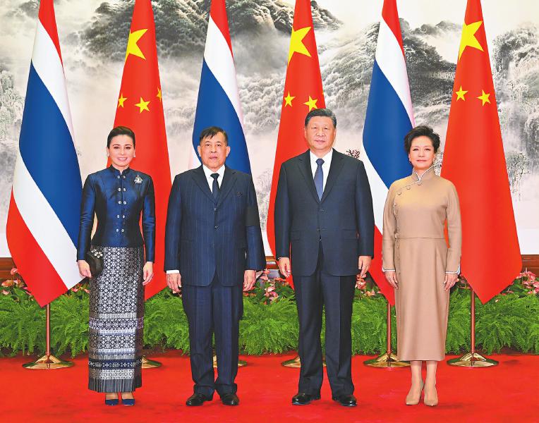 十一月十四日上午,国家主席习近平在北京人民大会堂会见来华进行国事访问的泰国国王哇集拉隆功。这是习近平和夫人彭丽媛同哇集拉隆功和王后素提达合影。新华社记者谢环驰摄