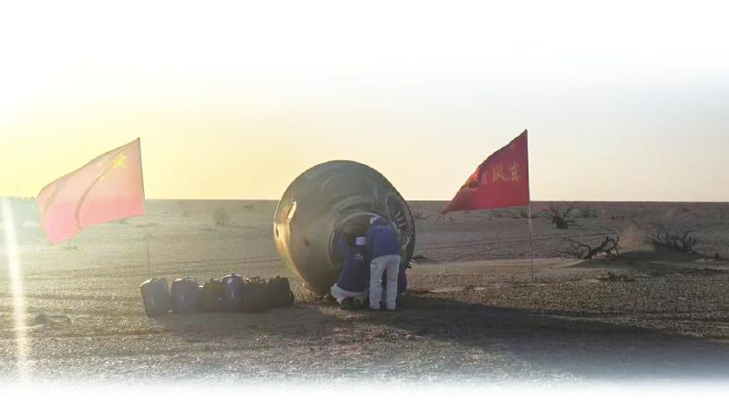 11月14日,载着神舟二十号航天员乘组的神舟二十一号载人飞船返回舱在东风着陆场成功着陆。新华社发(汪江波 摄)