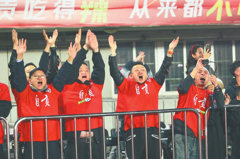 11月9日,自贡灯城燊龙队以2∶0战胜对手,球迷现场欢呼,庆祝球队提前锁定总决赛席位。
