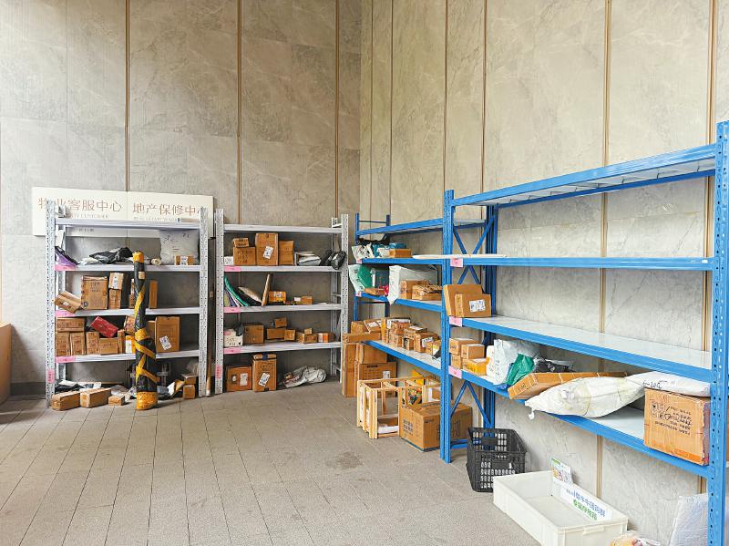 新川樾小区物业办公室部分区域被改造成快递取件点。