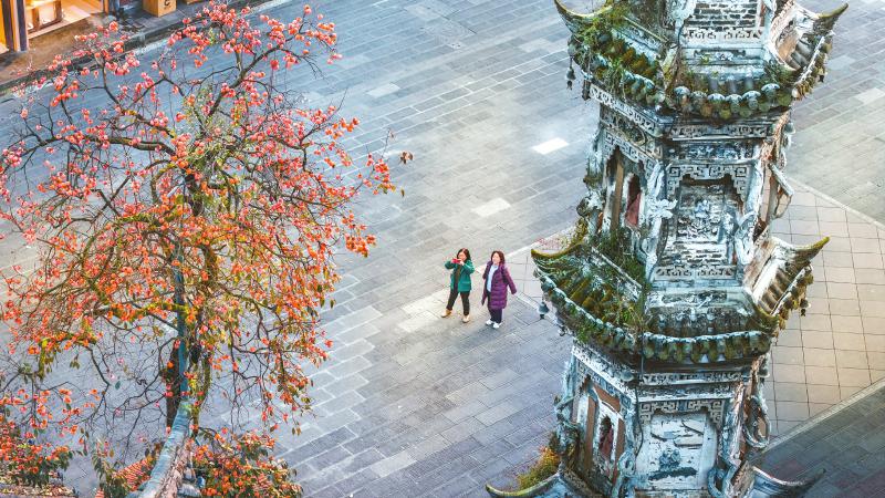 晨晖如一层薄纱,轻柔地披在古镇上,橙红的柿子、古老的字库塔相互映衬,定格下这时节的美好。 李旭 摄(C视觉)