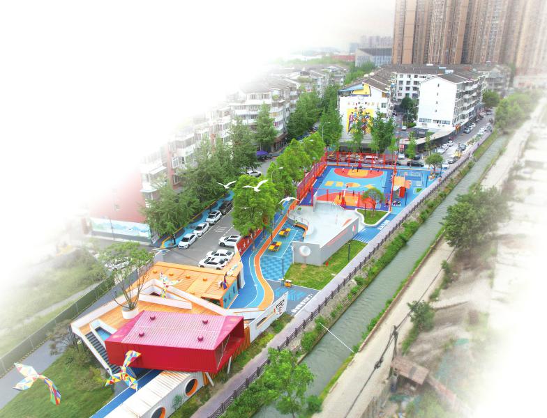 成都利用城市剩余空间打造“金角银边”青年公共空间。图为温江区天府街道游家渡社区的公共空间。团省委供图