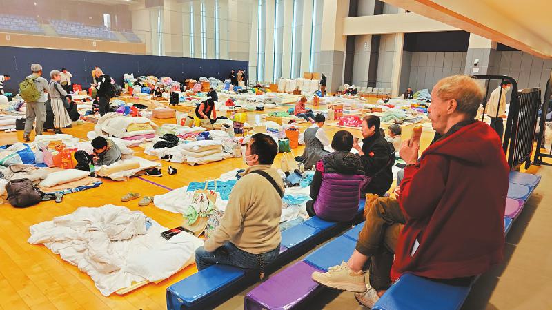 十一月二十七日,受火灾影响的市民被安置在香港大埔东昌街体育馆。新华社记者 陈铎 摄