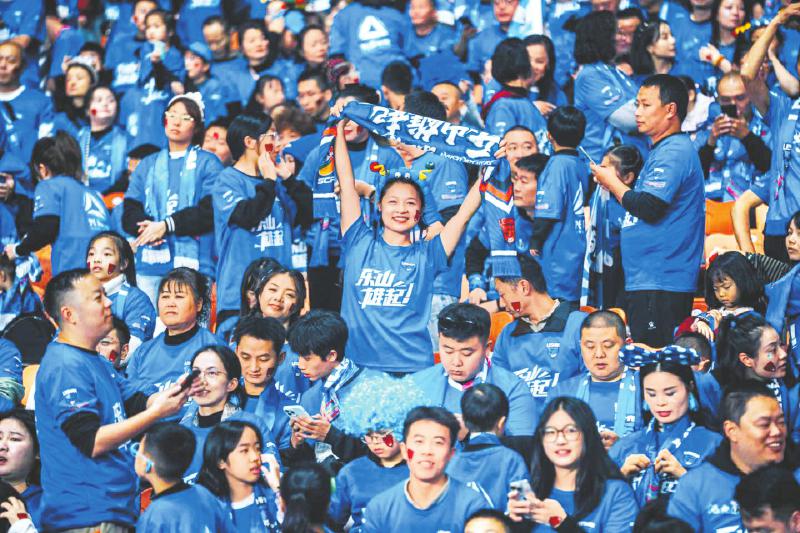 球迷为乐山队加油助威。 杨平 摄