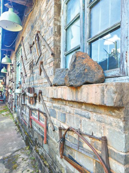 陈列室外墙也挂满高建的收藏。赵建诚 摄