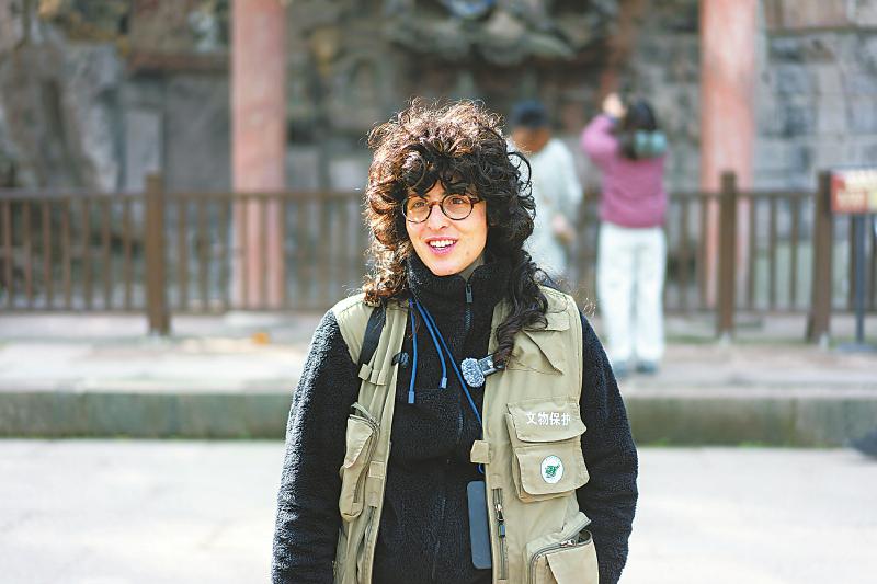 娜塔莉在安岳毗卢洞接受采访。