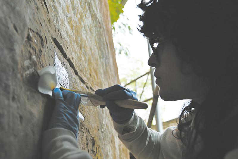 娜塔莉在测试加固材料。