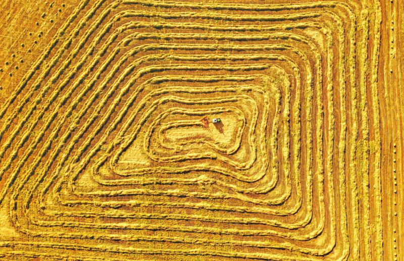 9月11日,阿坝州红原县瓦切镇的牧民在牧草生产基地收获牧草。