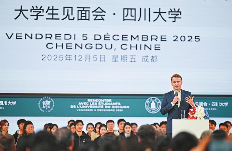 12月5日下午,法国总统马克龙在四川大学演讲。