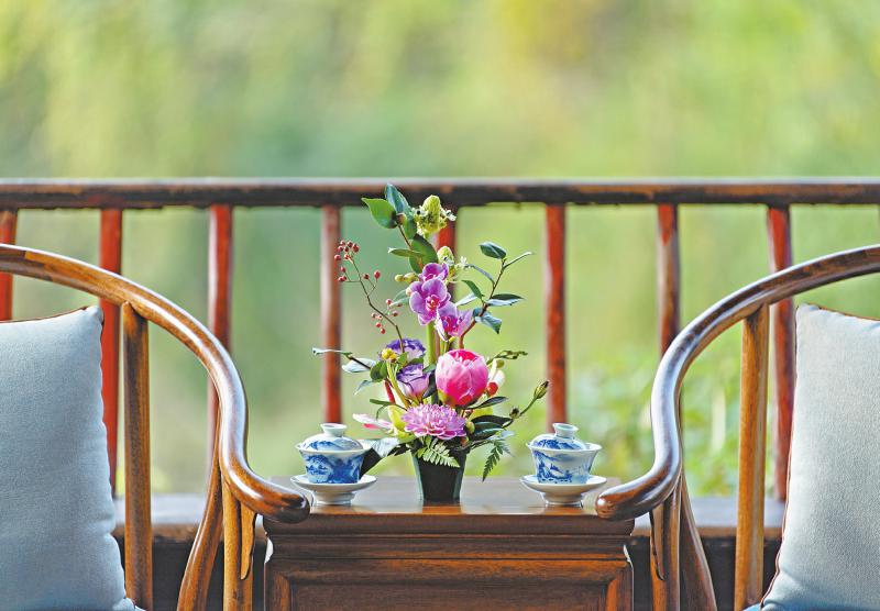 怀古亭里,盆景和盖碗茶,透着浓浓的四川味道。 四川日报全媒体记者 赵明 摄