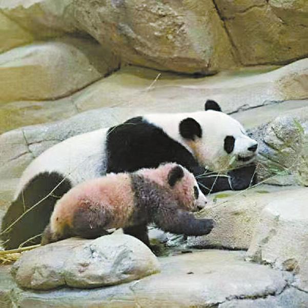 大熊猫“欢欢”和幼时的“圆梦”。