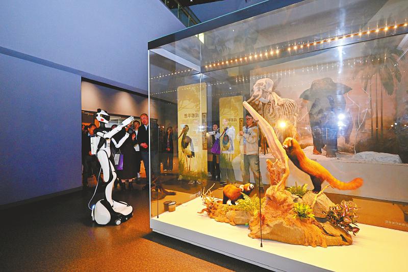 近日,“小芯”在成都自然博物馆里作讲解。芯华创新中心供图