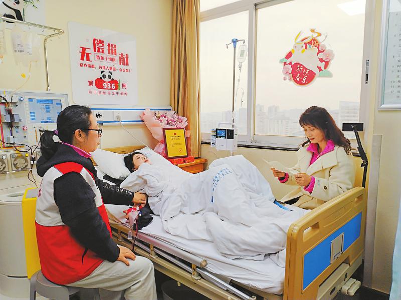 胡盼(中)在四川省人民医院进行造血干细胞捐献。 受访者供图
