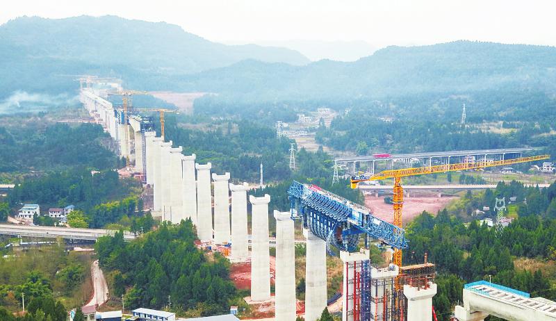 亭子口灌区工程是四川“六横六纵”引水补水生态水网的重大水利基础设施建设项目,设计灌溉面积371万亩,供水人口451万人。粟家庙渡槽是亭子口灌区一期工程长度最长、技术难度最大、跨越建筑物最多、结构形式最复杂的渡槽,是全线控制性节点工程。 余中华 摄(C视觉)