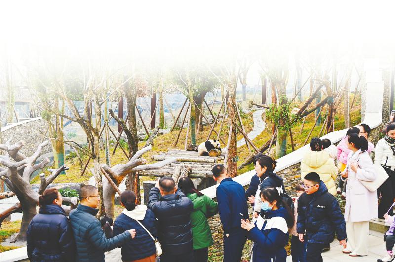 12月21日,市民近距离观赏园区内大熊猫撒欢。四川日报全媒体记者 何海洋 摄