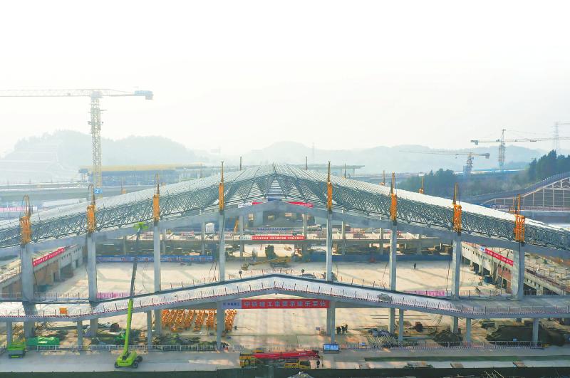 12月17日,乐至站站房主体结构完工。乐至站是成达万高铁与成渝中线高铁共用车站。 成达万公司供图