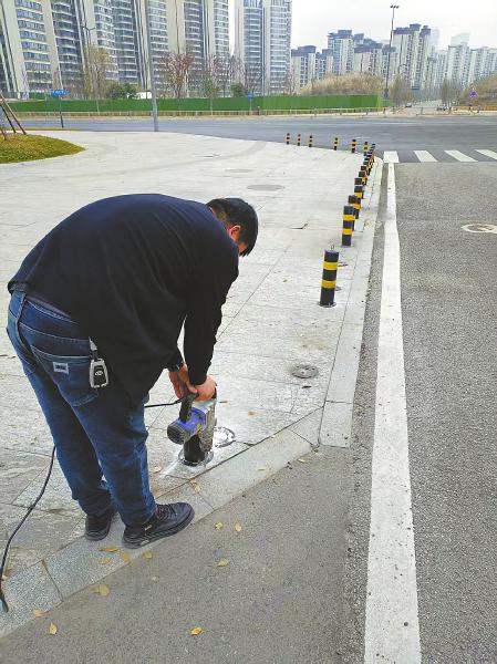 十二月十九日,工作人员在恢复被损隔离桩。四川天府新区公园城市建设局供图