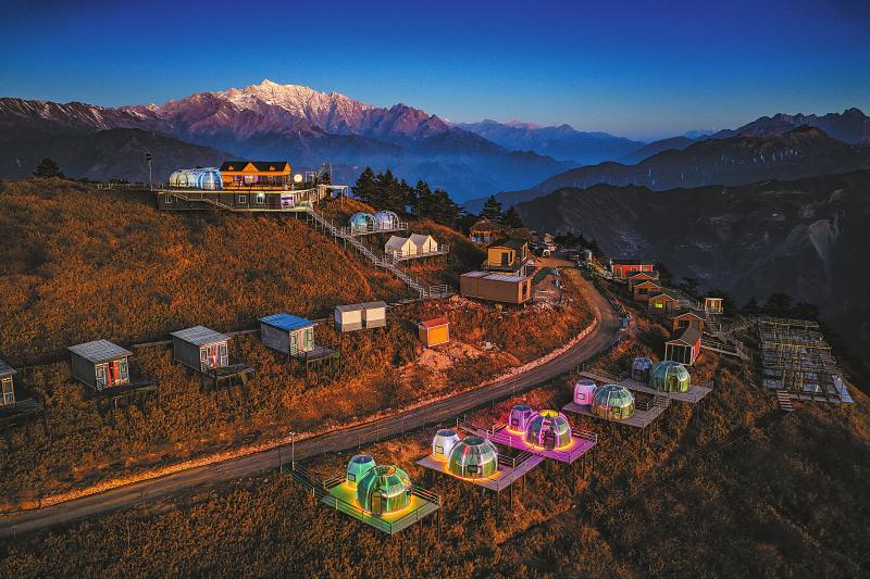 12月18日清晨,在甘孜州泸定县兴隆镇化林村,海拔2080多米的星空房与远处巍峨的雪山共同构成壮美的冬景。