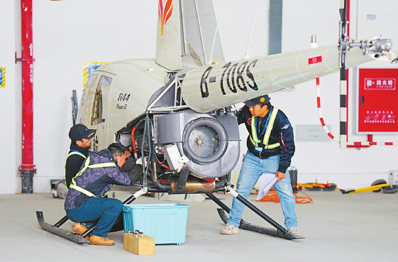 四川泛美通用航空集团有限公司的工作人员在调试设备。 郭超英 摄