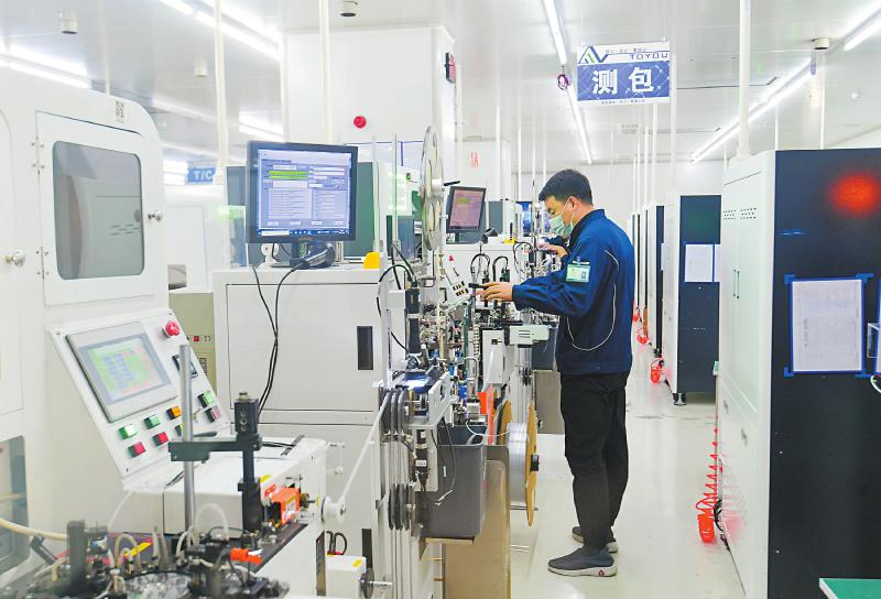 近日,通友微电(四川)有限公司工人正在车间生产电感元件材料。 夏雨 摄