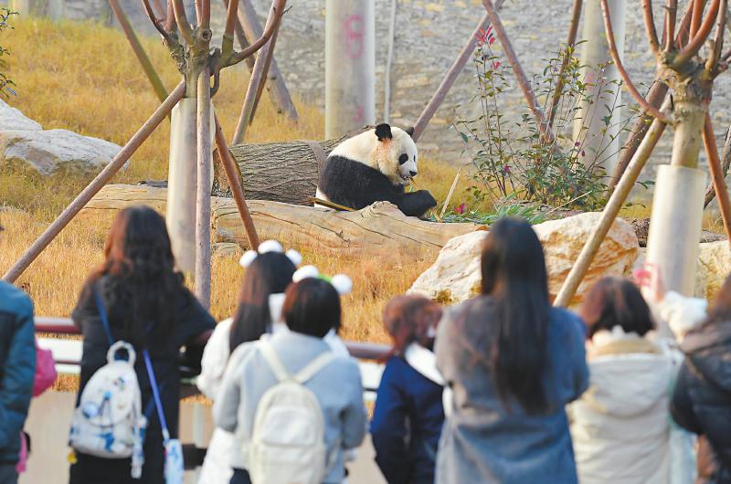游客在绵阳中华大熊猫苑观看大熊猫。 王勇 摄