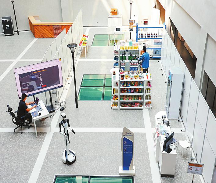 天府绛溪实验室机器人训练技术创新中心的训练场内,训练师正在训练机器人。 (天府绛溪实验室供图)