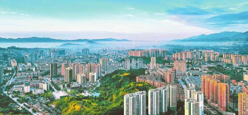 鸟瞰邻水县城区。