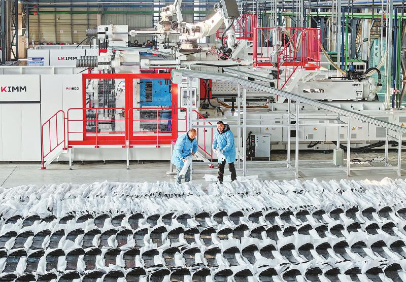 1月8日,华蓥市华蓥山经开区,瑾辰汽车配件有限公司工人在摆放智能设备生产的订单产品。邱海鹰 摄(C视觉)