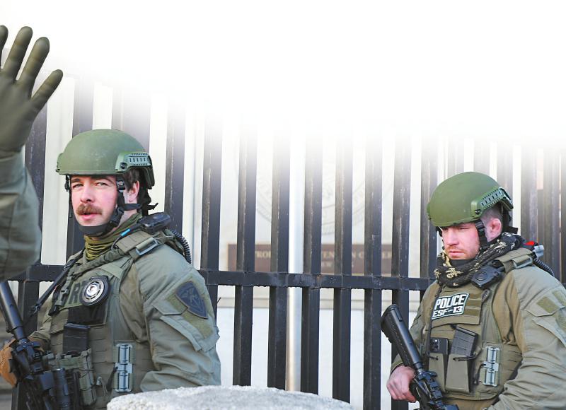 1月7日,警卫人员在美国纽约布鲁克林区的大都会拘留中心外巡逻。目前,委内瑞拉总统马杜罗被关押在此。新华社记者 张凤国 摄