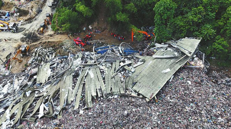 1月10日,救援人员在菲律宾宿务市的垃圾场塌陷事故现场工作。 新华社/美联
