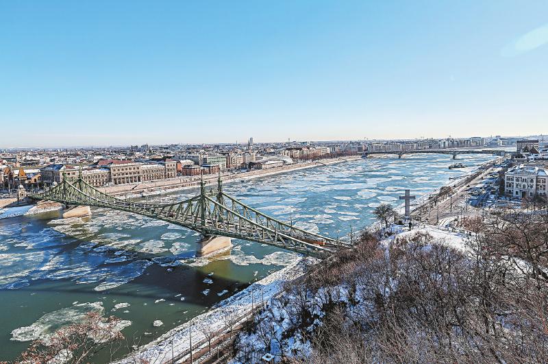 布达佩斯:多瑙河现浮冰 因天气寒冷,多瑙河布达佩斯段近日出现多年未见的大量浮冰。图为1月12日,在匈牙利布达佩斯,浮冰在多瑙河上漂流。
