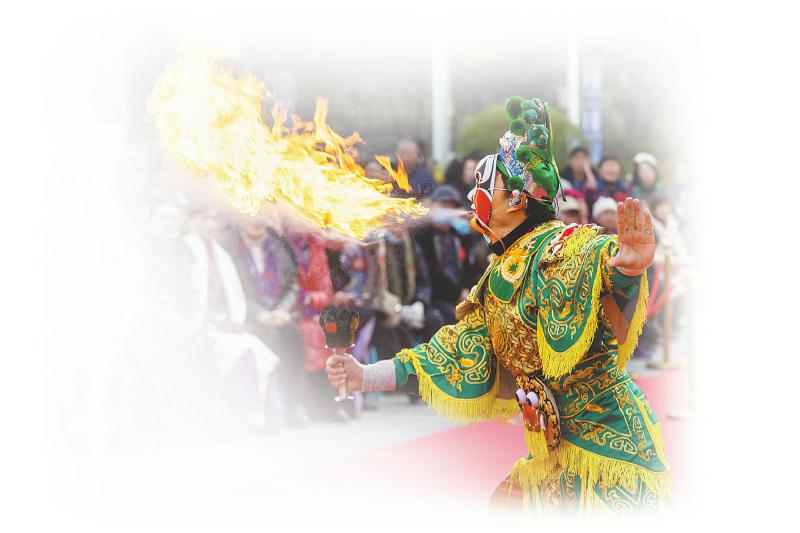 1月12日,在遂宁市船山区灵泉街道书院社区,辖区居民观看吐火表演。吴奉家 摄(C视觉)