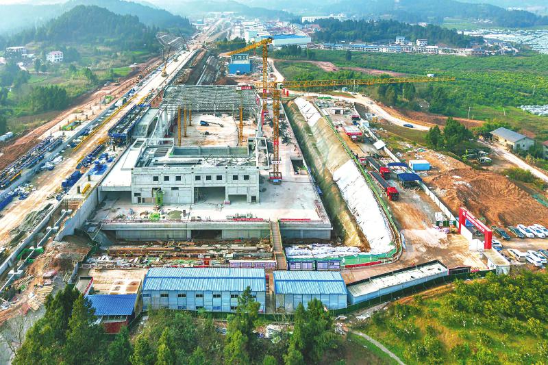 1月10日,成渝中线高铁安岳站建设现场。杨康忠 摄(C视觉)
