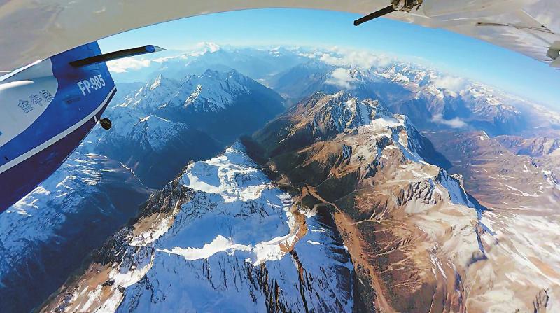 FP-985“金牛座”大型固定翼无人机飞过连绵雪山。新华社发