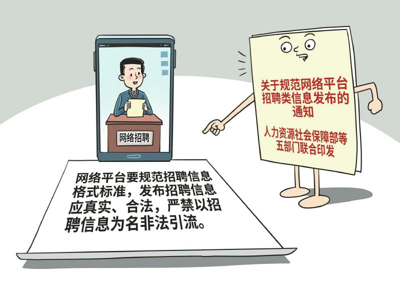 近日,人力资源社会保障部等五部门联合印发《关于规范网络平台招聘类信息发布的通知》,进一步规范网络招聘秩序。 朱慧卿/图