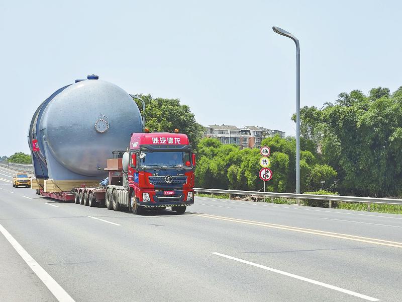 运往俄罗斯远东地区的天然气加工设备行驶在大件公路上(资料图片)。 四川省交通物流发展中心供图